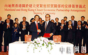 中新社香港六月二十九日電 國務(wù)院總理溫家寶今天在此間說,《內(nèi)地與香港關(guān)於建立更緊密經(jīng)貿(mào)關(guān)系的安排》一共有三個(gè)方面內(nèi)容,包括了貨物貿(mào)易、服務(wù)貿(mào)易和貿(mào)易投資便利化;灸繕(biāo)是∶逐步取消貨物貿(mào)易的關(guān)稅和非關(guān)稅壁壘,逐步實(shí)現(xiàn)服務(wù)貿(mào)易自由化,促進(jìn)貿(mào)易投資便利化,以提高內(nèi)地與香港之間的經(jīng)貿(mào)合作水平,實(shí)現(xiàn)共同發(fā)展。