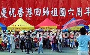 香港慶;貧w六周年在維園舉辦大型慶祝活動,吸引眾多市民頭頂烈日參與嘉年華場內(nèi)游戲活動。洪少葵 攝