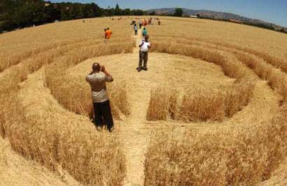 研究人員并不是到現(xiàn)場(chǎng)的唯一人群,數(shù)百名當(dāng)?shù)孛癖娨簿奂浆F(xiàn)場(chǎng),一些人站在怪圈里忙碌地用計(jì)算器計(jì)算,另一些人則對(duì)眼前的一切感到非常驚奇,還有一些人像對(duì)待黃金一樣地小心翼翼的收集怪圈里的小麥。