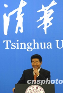 。牐犜诮裉烊澜缍假潎@的中國的發(fā)展之中包含著清華大學(xué)莘莘學(xué)子的汗水與熱情,尊敬的胡錦濤主席是大家令人驕傲的前輩這一點(diǎn)更增添了清華大學(xué)人的自豪感。