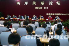 2003年海峽兩岸關(guān)系論壇十七日在云南麗江開(kāi)幕,來(lái)自海峽兩岸、香港、澳門(mén)以及海外的百余位專家學(xué)者出席會(huì)議,這是“非典”疫情雙解除后,海峽兩岸間首次舉行的大規(guī)模交流活動(dòng)。中新社記者:毛建軍