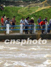 今夏淮河洪水淹沒(méi)千里漁米之鄉(xiāng)的魚(yú)塘,養(yǎng)魚(yú)農(nóng)民血本無(wú)歸。安徽省阜陽(yáng)縣的養(yǎng)魚(yú)農(nóng)民坐在洪水邊欲哭無(wú)淚。中新社記者:賈國(guó)榮