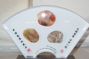 去年在山東泰山舉辦的“國(guó)際奇石博覽會(huì)”上,南京六合雨花石收藏家曹萍女士收藏的名為《人》、《鑒真東渡》獲得金獎(jiǎng),她的雨花石展臺(tái)引得韓國(guó)愛(ài)石人協(xié)會(huì)主席樸正川子駐足流連,連聲稱(chēng)贊“妙、奇、絕”。曹萍女士認(rèn)為人們之所以對(duì)雨花石情有獨(dú)鐘,是因?yàn)槭篱g奇石、觀光石眾多,但唯有雨花石以其獨(dú)具的“六美”取勝。既煥若瑟若的質(zhì)地美,鐘靈毓秀的形態(tài)美,璀璨瑰麗的色彩美,變化有致的紋理美,詩(shī)情畫(huà)意的呈象美,形神兼?zhèn)涞囊饩趁馈?/p>