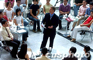 眼下已是暑假,可清華大學(xué)舜德樓一樓大廳卻熱鬧異常,今天上午,一場(chǎng)別開(kāi)生面的圓桌座談會(huì)正在這里舉行,座談會(huì)的主角是正在中國(guó)訪問(wèn)的英國(guó)首相布萊爾與百名清華學(xué)子。