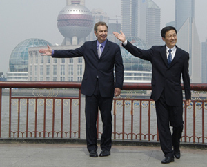 中午,布萊爾一抵達(dá)上海就會(huì)見(jiàn)了上海市長(zhǎng)韓正。