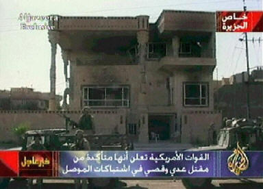 中新網(wǎng)7月23日電 美軍上將桑切斯7月22日晚在巴格達(dá)舉行的新聞發(fā)布會上證實,烏代和庫賽已在美軍當(dāng)天突襲伊拉克北部城市摩蘇爾一座別墅的軍事行動中被打死。圖為半島電視臺畫面顯示美軍突襲該別墅的情景。(春風(fēng))