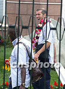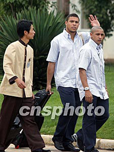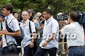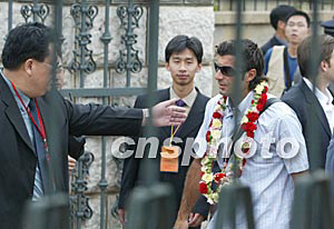 隨后下車(chē)的羅納爾多、齊達(dá)內(nèi)、菲戈、勞爾等巨星的號(hào)召力顯然不如剛剛加盟皇馬的貝克漢姆,圍在身邊的記者要少許多。趁此之機(jī),本社記者在第一時(shí)間采訪(fǎng)了菲戈,菲戈告訴記者,這是他第一次到中國(guó)大陸,感覺(jué)很不錯(cuò)。