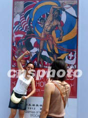 記者昨天在天壇公園看到,會徽發(fā)布儀式現(xiàn)場基本準備就緒。場地工作人員正有序地做著布置收尾工作。2008把藍色椅子整整齊齊地擺放在祈年殿前廣場,靜候著北京2008年奧運會會徽光彩亮相。而在會徽發(fā)布儀式現(xiàn)場合影留念,昨天成了世界各地游人的共同心愿,在相機鏡頭鎖定的一個又一個燦爛笑容下,北京2008年奧運會會徽將在人們的熱切期待中撩開神秘面紗,閃亮登場。