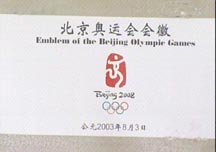 中新網(wǎng)北京8月3日電 北京時(shí)間8月3日晚21時(shí),北京2008年奧運(yùn)會(huì)會(huì)徽揭開神秘面紗——“中國(guó)印·舞動(dòng)的北京”。這是一個(gè)以中國(guó)傳統(tǒng)文化印章為載體,原創(chuàng)者為北京始創(chuàng)國(guó)際企劃公司。