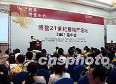 博鰲二十一世紀(jì)房地產(chǎn)論壇二00三屆年會(huì)二十三日在海南博鰲隆重開幕,來(lái)自全國(guó)各地的房地產(chǎn)公司老總出席,論壇主題為“金融緊縮下的中國(guó)房地產(chǎn)。作者:莫成雄
