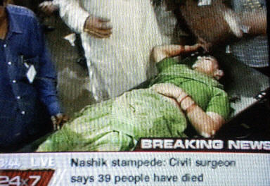 克里帕什安卡稱,數(shù)千名朝圣者齊聚馬哈拉什特拉邦納什科鎮(zhèn),按照慣例他們將在附近的哥達瓦里河進行一種具有宗教色彩的“沐浴”,當大量人群沖進當?shù)鬲M窄的街道向河岸跑時,發(fā)生了這一幕慘劇。