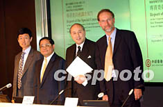 中銀香港﹙控股﹚有限公司于9月5日舉行專責(zé)委員會(huì)調(diào)查報(bào)告新聞發(fā)布會(huì),就周正毅貸款調(diào)查報(bào)告及新農(nóng)凱事件,響應(yīng)記者問題。圖為【右起】專責(zé)委員會(huì)特別顧問費(fèi)蘭特、召集人梁定邦、馮國經(jīng)及單偉建出席記者會(huì)。作者:洪少葵