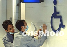 新加坡出現(xiàn)SARS疑似病例后,九月九日,香港國際機場工人又重新戴上口罩,積極做好防范措施。作者:潘索菲