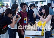 新加坡發(fā)生SARS個案后,引起香港各方關(guān)注,圖為媒體在香港國際機場采訪抵港旅客。作者:潘索菲