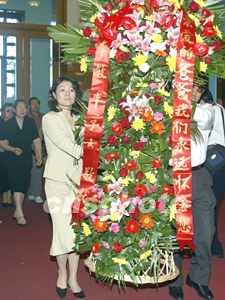 毛澤東的女兒李敏(母親賀子珍)與女兒(前左)兒子到北京毛主席紀(jì)念堂敬獻(xiàn)花籃,紀(jì)念父親逝世二十七周年。中新社記者:任晨鳴