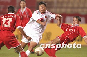 中新網(wǎng)9月10日電 由沈祥福執(zhí)掌教鞭的新一屆中國(guó)國(guó)奧隊(duì),今天晚上在沖擊明年雅典奧運(yùn)會(huì)的第一場(chǎng)比賽中取得“開(kāi)門(mén)紅”,在剛剛于昆明拓東體育場(chǎng)舉行的比賽中,國(guó)奧隊(duì)以二比○戰(zhàn)勝敘利亞國(guó)奧隊(duì)。