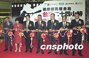 『兩岸攝影家合拍臺灣二十四小時攝影作品展』十一日在澳門觀光塔舉行,澳門特區(qū)行政長官何厚鏵、中國海外交流協(xié)會副會長趙陽、中央駐澳聯(lián)絡辦副主任王金翔等出席開幕式并為展覽剪彩。中新社記者:李剛