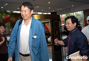 北京新浪聯(lián)席董事長姜豐年九月二十一日中午抵達長沙,準(zhǔn)備出席二十二日開幕的“第二屆世界華文傳媒論壇”,圖為中國新聞網(wǎng)孫永良(右)與新浪聯(lián)席董事長姜豐年。中新社記者:張宇