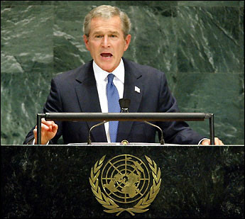 布什繼續(xù)捍衛(wèi)對(duì)伊戰(zhàn)爭的合理性,為其未經(jīng)聯(lián)合國授權(quán)而對(duì)伊拉克采取的單邊軍事行動(dòng)辯解,指薩達(dá)姆政權(quán)的倒臺(tái)使伊拉克人民可以建設(shè)一個(gè)自由的社會(huì),伊拉克的成功將說明繁榮和穩(wěn)定在中東地區(qū)是可以實(shí)現(xiàn)的。