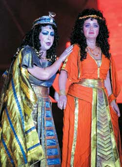 讓人驚奇的是,這個古老的埃及故事的結(jié)局和中國古老的愛情故事《梁祝》做了非常巧妙的嫁接。即將被處死的拉達梅斯走進墓穴,而美麗的阿依達也跟隨他一同走向歸宿。墓穴緩緩閉合,全場燈光瞬間熄滅,幾百支火把一起點亮,此時夜空中兩只巨大的蝴蝶和幾千只美麗的小蝴蝶翩翩起舞,而主人公幻化的“靈魂”從舞臺西側(cè)飛向東側(cè)。美麗的結(jié)尾,將成為人們永久的記憶。(張學(xué)軍)