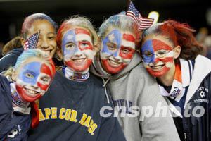 美國當?shù)貢r間10月1日晚,女足世界杯第二場四分之一比賽在美國東海岸的波士頓市吉列體育場舉行,許多美國小球迷到場為美國隊助威。作者:劉占坤