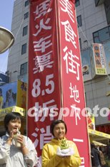 北京十一黃金周期間外地游客大幅上升,北京王府井一家美食廣場(chǎng)為招攬客源推出“憑火車(chē)票八五折消費(fèi)”的優(yōu)惠措施,吸引了大批旅游者。中新社記者:廖文靜