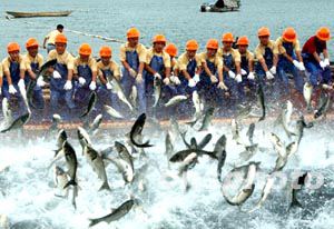 良好的生態(tài)環(huán)境使浙江千島湖不僅成為著名的旅游勝地,同時也是淡水魚十分豐富的地區(qū)。十月上旬,一年一度的巨網(wǎng)捕魚成為了千島湖旅游的另一新亮點。作者:李杭生