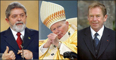 據(jù)稱,今年諾貝爾和平獎(jiǎng)的評(píng)獎(jiǎng)過(guò)程呈現(xiàn)公開化,至少有165名候選人。除了保羅二世、哈弗爾和盧拉以外,法國(guó)總統(tǒng)希拉克、英國(guó)首相布萊爾、美國(guó)總統(tǒng)布什、前聯(lián)合國(guó)監(jiān)核會(huì)主席布里克斯以及國(guó)際原子能機(jī)構(gòu)主席埃爾巴拉迪也等也獲得提名。