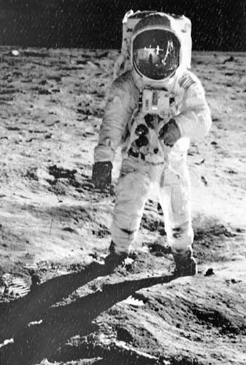 1969年7月20日,美國(guó)宇航員尼爾·阿姆斯特朗(頭盔中影像)和巴茲·奧爾德林(如圖)乘“阿波羅”11號(hào)飛船首次登上月球。新華社圖