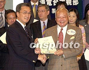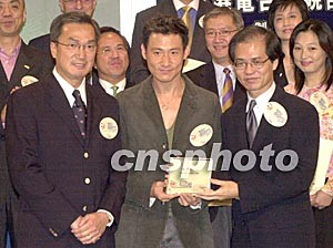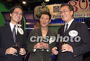 10月16日,香港電臺與警務(wù)處聯(lián)合制作的電視節(jié)目《警訊》舉行三十周年紀(jì)念典禮,警務(wù)處處長曾蔭培及廣播處長朱培慶與歌星張學(xué)友于活動上言談甚歡。作者:鄧慶樂