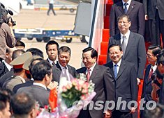 十月十七日國(guó)家副主席曾慶紅蒞臨澳門訪問(wèn),國(guó)務(wù)委員唐家璇,全國(guó)政協(xié)副主席、國(guó)務(wù)院港澳辦主任廖暉隨同抵達(dá)。中新社記者:潘索菲