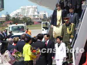 到機場歡迎胡錦濤主席的還有聯(lián)邦和新州官員、華人華僑、中資機構負責人、中國留學生代表和中國使領館工作人員。