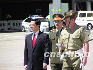 中國國家主席胡錦濤和夫人22日上午10時許抵達悉尼國際機場,對澳大利亞進行國事訪問,受到澳聯(lián)邦總督杰弗里和總理霍華德等熱烈歡迎。中新社記者 劉雨生 攝