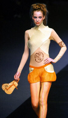 模特在27日烏克蘭基輔舉辦的“二00三流行季”時裝展上展示本土設計師的作品。此次有21位時裝設計師參加為期四天的時尚作品展示。