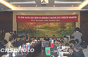 據(jù)悉,今年八月,亞太空間合作組織在泰國曼谷舉行章程起草組第一次會議,與會代表一致同意將亞太空間合作組織總部設在中國。十日舉行的第二次會議將結束亞太空間合作組織章程所有條款的討論,在獲得有關國家政府批準后,亞太空間合作組織即可正式成立。