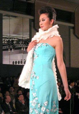 中國(guó)國(guó)際時(shí)裝周NE·TIGER 2003/2004高級(jí)皮草晚裝,個(gè)性奢華寶藍(lán)系列。