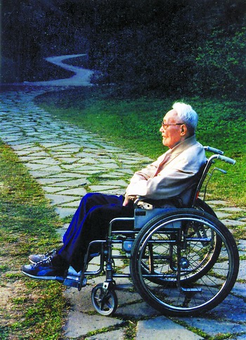 但也正是由于在完成《隨想錄》一百五十多篇寫(xiě)作后,巴金仍不曾放下他那堅(jiān)強(qiáng)的筆桿,他在九十歲(1994)以后身體確實(shí)越來(lái)越顯得衰老了,不僅頭發(fā)全白,他那老年性慢性支氣管炎更加嚴(yán)重,“文革”結(jié)束后不久就患上的帕金森氏病更使他行動(dòng)受到影響,連筆也愈來(lái)愈不聽(tīng)使喚;同時(shí)由于身體嚴(yán)重缺鈣,引起胸脊椎骨折和體位性血壓波動(dòng)。他在八十年代中期還可以站在特制的圈車?yán)镒邉?dòng),而現(xiàn)在只好坐在輪椅上過(guò)日子;當(dāng)然,每天幾乎有一半時(shí)間還是躺在床上。