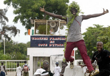 中新網(wǎng)12月2日電 路透社消息稱,非洲小國(guó)科特迪瓦局勢(shì)面臨著一觸既發(fā)的危險(xiǎn),成百上千的抗議者和示威者持大砍刀和其它器械團(tuán)團(tuán)包圍了駐有4000法軍的軍事基地,要求法軍立即滾出該國(guó)!