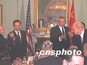 會見后,溫家寶出席了鮑威爾舉行的歡迎宴會。李肇星等中方陪同人員和美國財政部長斯諾、總統(tǒng)國家安全事務(wù)助理賴斯等出席。完