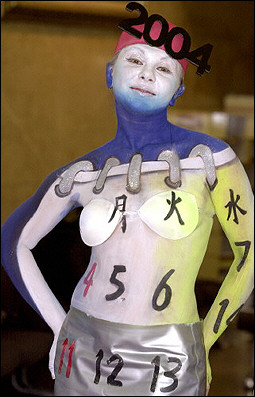 韓國漢城的一項商業(yè)活動中,模特展示新奇時尚彩繪——日歷女孩。