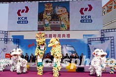 香港九廣西鐵12月20日正式通車,在錦上路站舉行啟用儀式,醒獅起舞助興為九廣西鐵通車?yán)_(kāi)帷幕。中新社記者:洪少葵