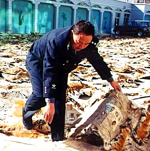 拉薩海關(guān)緝私局副局長(zhǎng)李建文撣撣身上的土告訴記者,10月10日他們將這批動(dòng)物皮張從查獲地點(diǎn)運(yùn)回拉薩海關(guān)時(shí),動(dòng)用了全部警力,花了3個(gè)小時(shí)才將皮張數(shù)量點(diǎn)清。他說(shuō),根據(jù)黑市上的價(jià)格,這批動(dòng)物皮張的總價(jià)值超過(guò)1000萬(wàn)元。“當(dāng)然,由于孟加拉虎、金錢(qián)豹和水獺都是瀕危動(dòng)物,依照國(guó)家法律和國(guó)際公約都是明令禁止射殺、販賣的,所以它們的價(jià)值遠(yuǎn)非金錢(qián)可以衡量。”李建文同時(shí)強(qiáng)調(diào)。