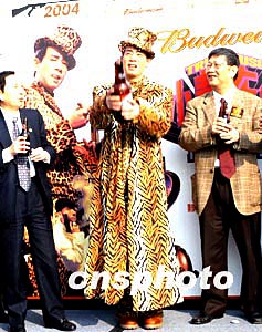 歌星陳小春1月14日在香港舉行《陳小春夜生活演唱會》記者會,陳小春會上為演唱會預(yù)祝成功用贊助商特別制的大型啤酒噴紙屑。作者:鄧慶樂  歌星陳小春1月14日在香港舉行《陳小春夜生活演唱會》記者會,吸引大批傳媒采訪。作者:鄧慶樂