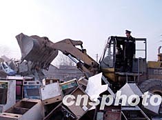 春節(jié)前夕,北京警方將收繳的4000余臺(tái)賭博機(jī)集中銷毀。作者:韓金星