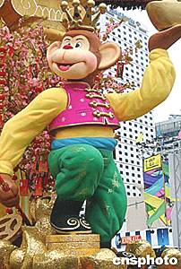 中國(guó)傳統(tǒng)年春節(jié)將至,正在香港添馬艦廣場(chǎng)舉行的環(huán)球嘉年華活動(dòng)上,醒目的“齊天大圣”手托金元寶向人們恭賀新春。作者:錢興強(qiáng)