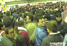 春節(jié)期間,香港羅湖口岸管理站加強(qiáng)各項(xiàng)管理措施,及時(shí)疏導(dǎo)出入關(guān)口的人潮。香港特別行政區(qū)行政長官董建華等政府官員,元月二十日來到羅湖口岸進(jìn)行巡視。作者:錢興強(qiáng)  羅湖口岸客流量明顯增大,往返于香港、深圳的大批客人等候過關(guān)。作者:錢興強(qiáng)