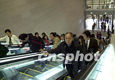 澳門新關閘邊檢大樓二日開始啟用,為了充分利用現(xiàn)有的空間,新邊檢大樓分為上下兩層,出境的旅客需通過扶梯從二樓前往出境大廳。中新社記者:李剛