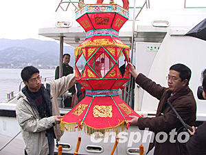 為增添馬祖鄉(xiāng)親元宵佳節(jié)的氣氛,馬尾經(jīng)濟(jì)文化交流合作聯(lián)誼會(huì)還專門制作了一批大小花燈今天由“閩珠二號(hào)”客輪運(yùn)送馬祖。