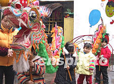 圖:重慶農(nóng)村兒童元宵佳節(jié)學舞龍