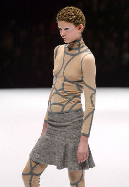 3月5日,在巴黎2004/2005秋冬時裝周上,模特展示設計師新款時尚秋冬女裝。